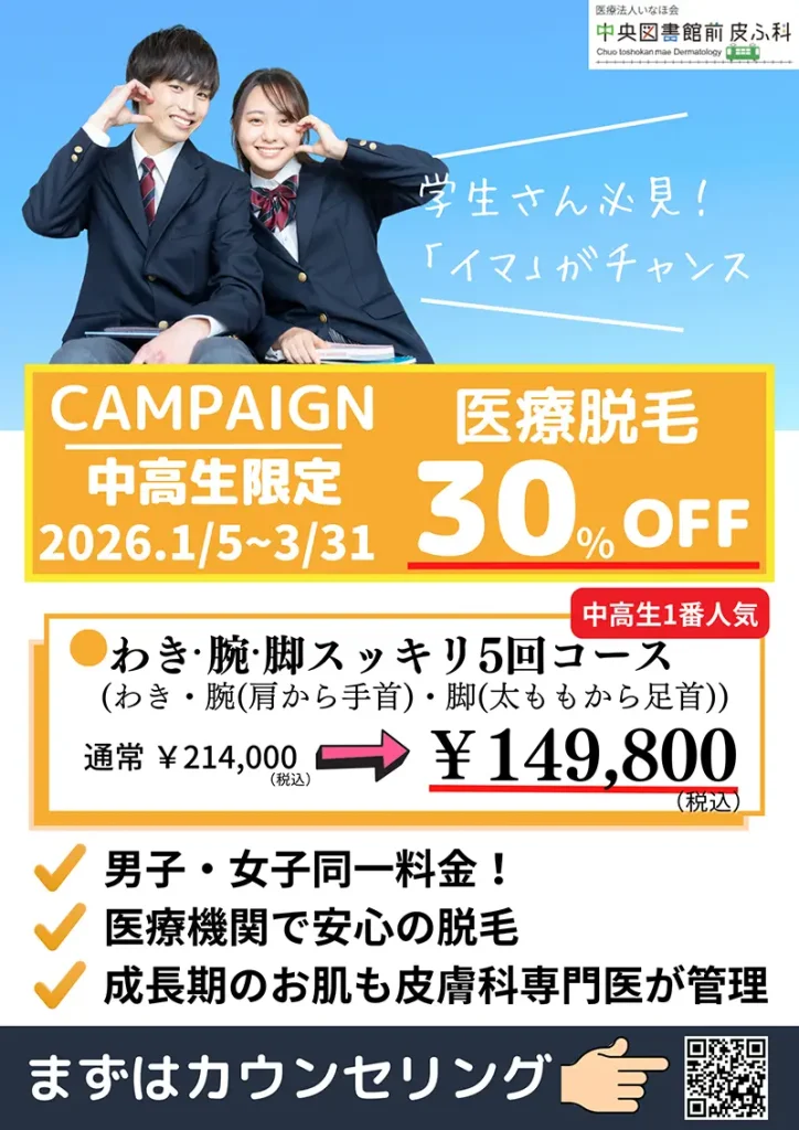 - 成長期の皮膚は薄いため、脱毛時の痛みを強く感じることがある(レーザーの出力調整で軽減できます)